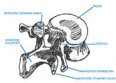 część piersiowa (thorac), a podparcie głowy stanowią kręgi szyjne. Kręgi